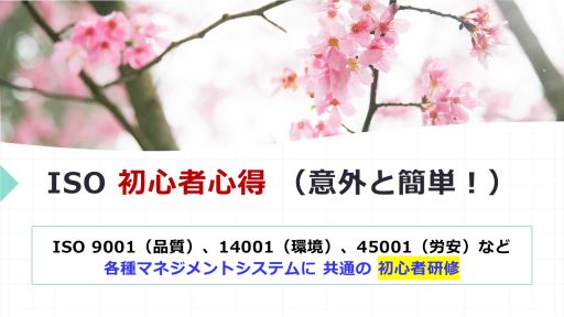 ISO の核心とは何か? 9001、14001、など各種 ISO(マネジメントシステム)に共通の初心者研修です。 細かい規格に拘らず、ISO の本質だけを再認識したい方にもおすすめです。