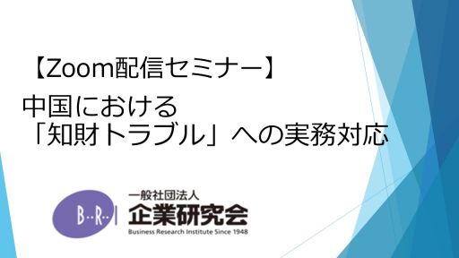 【開催にあたって】 中国は知的財産の出願、登録件数で米国とトップを争うほどの知財大国となりました。これに伴い、中国において生じる知的財産に関する紛争も増加の一途をたどっています。 中国企業とビジネスを行うに際しては、常に知的財産に関する紛争を意識する必要が生じているといえます。 もっとも、中国での知的財産紛争には特有の事情があり、この点を無視できません。 また昨今では中国企業との紛争が、中国国内にとどまらず、グローバルに展開されるようにもなりました。 このため、本講座では、まず中国企業との知財トラブルの実態(中国知財紛争特有の事情、中国企業とのグローバルな紛争等)についてご紹介致します。その上で、これらを踏まえて、必要となる知財紛争への備えについて、具体的な対応方法を挙げつつ解説していきます。また、併せて被告となった場合のポイントなどについてもご紹介したいと思います。