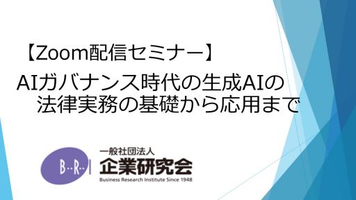 【開催にあたって】 AIガバナンスの重要性が叫ばれる中、法務担当者の皆様の中には、AIについて深めたいものの、書籍等を読むのは大変という方もいらっしゃるのではないでしょうか。 このセミナーは3時間でAIガバナンス時代のAIの利活用に関して法務が知るべきポイントをまとめていますので、基礎から応用まで理解できます。
