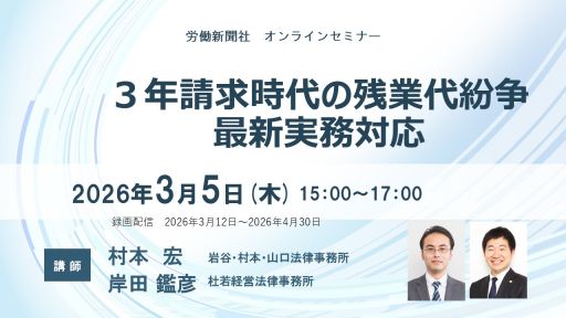 残業代請求は3年分が当たり前になり、それに伴い1件あたりの請求金額も増えています。請求方法や対応も様々で、加えて労基署対応が必要になるケースもあります。使用者側弁護士が、最新の実務対応について討論します。