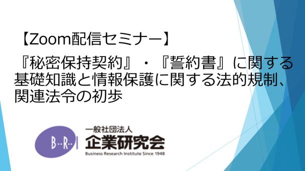【開催にあたって】 昨今、情報の財産的価値が高まるとともに、従業員や取引先による漏えいや不正使用の事例が多く見られます。 関係する主な法律の概要、秘密保持契約書の内容、従業員からの誓約書は取得時期などについて実務的な観点からお話いたします。