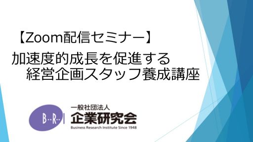 【開催にあたって】 企業を取り巻く経営環境が劇的に変化する昨今、経営企画部門が果たす役割はこれまでになく重要となってきております。経営計画・事業戦略策定や予実統制、M&Aや組織改革等、経営企画部門が担う業務は多岐に渡ります。 本セミナーでは、経営企画スタッフに必要な知識とスキル、そして心構え、また経営計画・事業戦略策定や予実統制、M&Aや組織改革などの戦略的な業務遂行方法、環境変化に適応し、自社を成長に導いていくために必要な経営企画スタッフが身に付けるべき業務方法のポイントを網羅的に解説します。