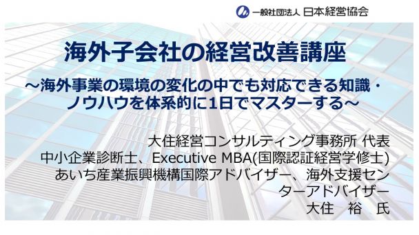 海外子会社の経営改善講座(オンデマンド受講)