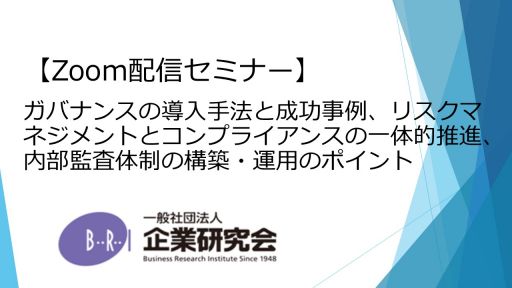 ガバナンスの導入手法と成功事例、リスクマネジメントとコンプライアンスの一体的推進、内部監査体制の構築・運用のポイント ー海外子会社に対するガバナンス、リスクマネジメント、内部監査の実務ー