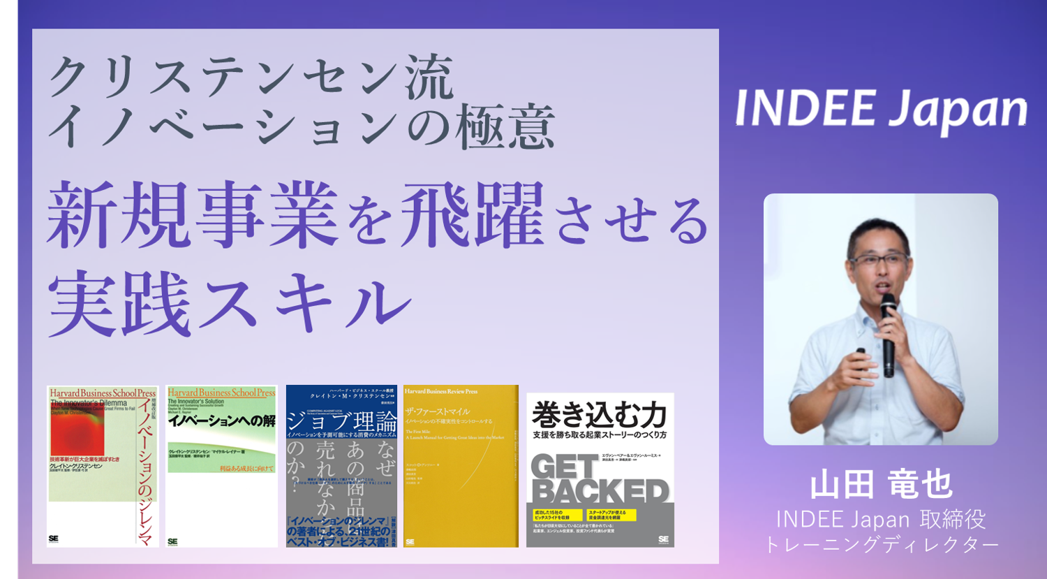 INDEE Japanでは10年以上にわたり、多くの先人たちの知恵を借りながら、大企業での新規事業開発や、スタートアップの立ち上げ支援などを行ってきました。世の中にイノベーションや新規事業開発について語られたものは多くありますが、理論を実践して得られた実践知のみで語られたものは少ないです。本プログラムでは自らが現場で培った豊富な実践知をもとに、理論と実践のギャップを埋める独自の内容をご提供します。