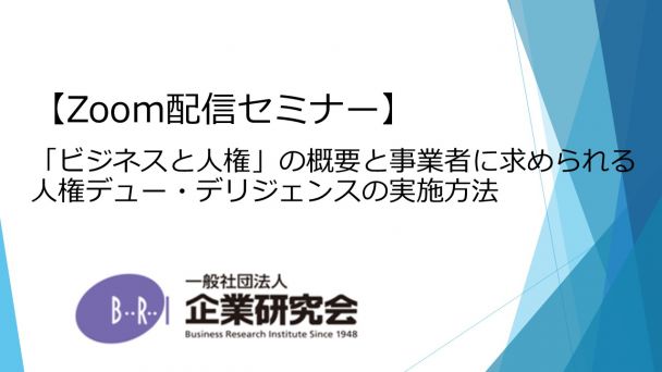 【開催にあたって】 新疆ウイグル自治区の問題などをきっかけに「ビジネスと人権」に関する問題が、国内外で大きな議論となっていく中で、事業者にとって「ビジネスと人権」に関する理解と具体的な対応を行うことが不可欠となってきております。 そのような中、大企業だけでなく、中小企業においても、人権デュー・デリジェンスを実施することが求められることとなっているにも関わらず、実際にどのように実施ししていけばよいか分からず試行錯誤されている事業者が多くなっております。 また、これまで経験をしてきていないこともありNGOからのコンタクトがあった場合に具体的にどのように対応するべきかについて具体的な対応にあたってどのようにすればよいか、苦慮しているのが現実です。 そこで、本講座では、これまで「ビジネスと人権」に関するNGOからのコンタクトへの対応や、人権指針の策定・人権デュー・デリジェンスの実施といった事業者の人権コンプライアンス体制の整備に多数関与しており、幅広い知見を有している講師が、国際通商からの視点にも触れつつ、近時のグローバルでの法整備や執行の状況、NGOへの対応方法など、企業に求められる実務的な対応について、解説させて頂きます。