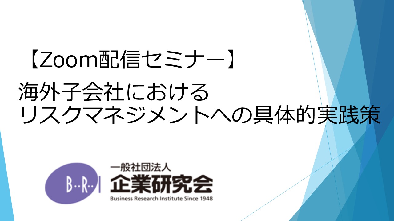 海外子会社におけるリスクマネジメントへの具体的実践策 ~グループ・ガバナンスを強化するための方法を豊富な事例を交えて解説~