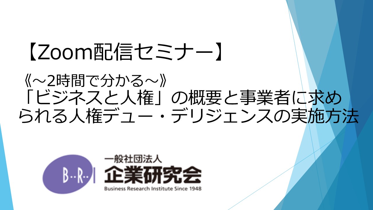 【開催にあたって】 新疆ウイグル自治区の問題などをきっかけに「ビジネスと人権」に関する問題が、国内外で大きな議論となっていく中で、事業者にとって「ビジネスと人権」に関する理解と具体的な対応を行うことが不可欠となってきております。 そのような中、大企業だけでなく、中小企業においても、人権デュー・デリジェンスを実施することが求められることとなっているにも関わらず、実際にどのように実施ししていけばよいか分からず試行錯誤されている事業者が多くなっております。 また、これまで経験をしてきていないこともありNGOからのコンタクトがあった場合に具体的にどのように対応するべきかについて具体的な対応にあたってどのようにすればよいか、苦慮しているのが現実です。 そこで、本講座では、これまで「ビジネスと人権」に関するNGOからのコンタクトへの対応や、人権指針の策定・人権デュー・デリジェンスの実施といった事業者の人権コンプライアンス体制の整備に多数関与しており、幅広い知見を有している講師が、国際通商からの視点にも触れつつ、近時のグローバルでの法整備や執行の状況、NGOへの対応方法など、企業に求められる実務的な対応について、解説させて頂きます。