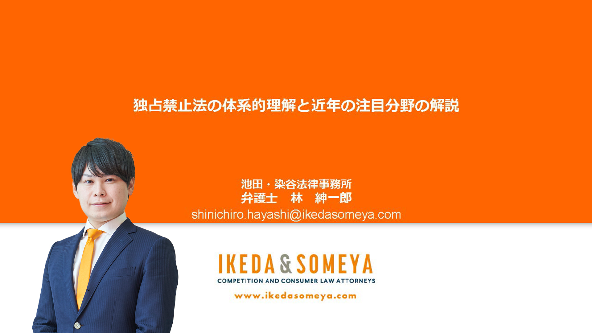 本セミナーでは、法務の基礎知識を持つ方から初めて独禁法に触れる方までを対象に、次の3つのテーマを体系的に解説します。