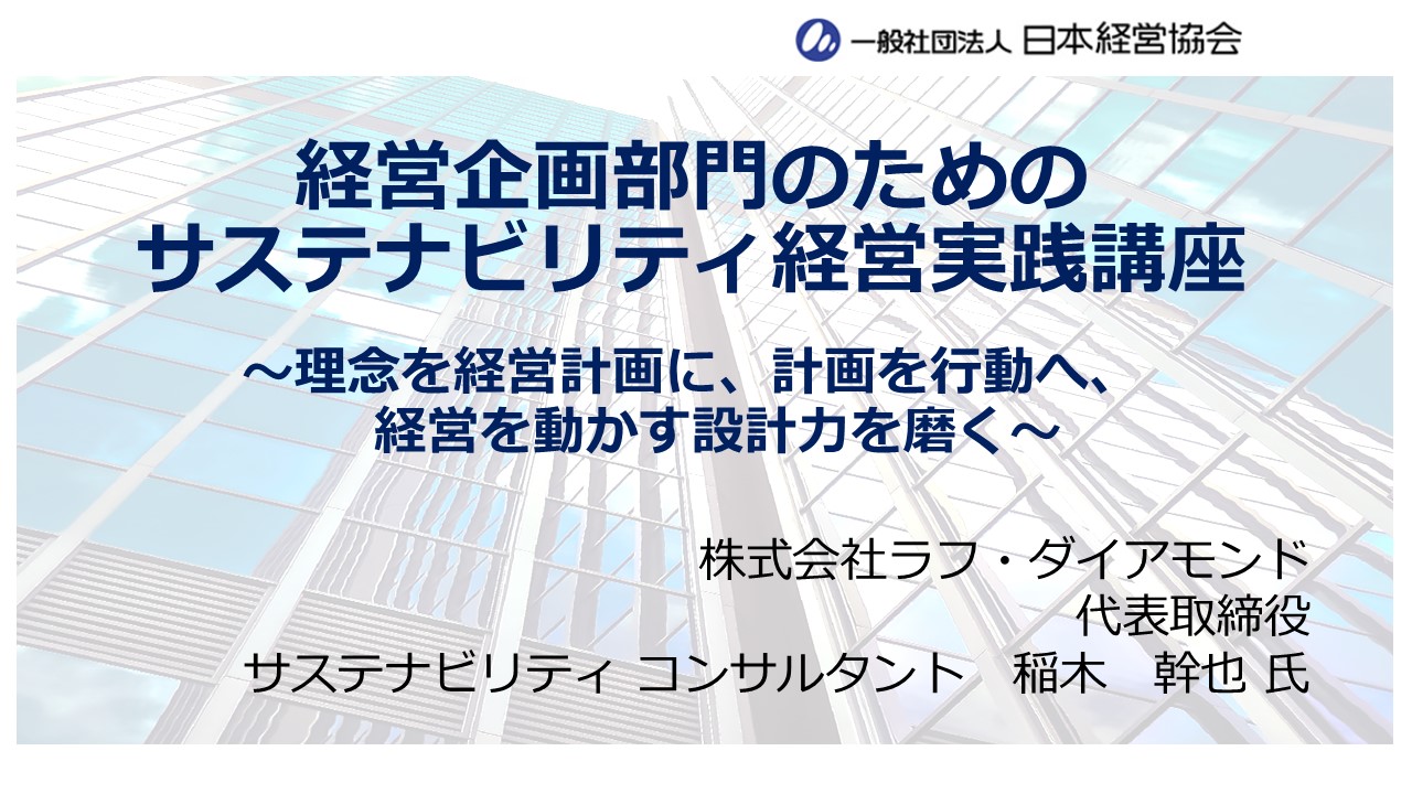 本講座では、サステナビリティを経営計画やKPIに組み込み、経営と現場をつなぐ“動かす企画力”を磨きます。