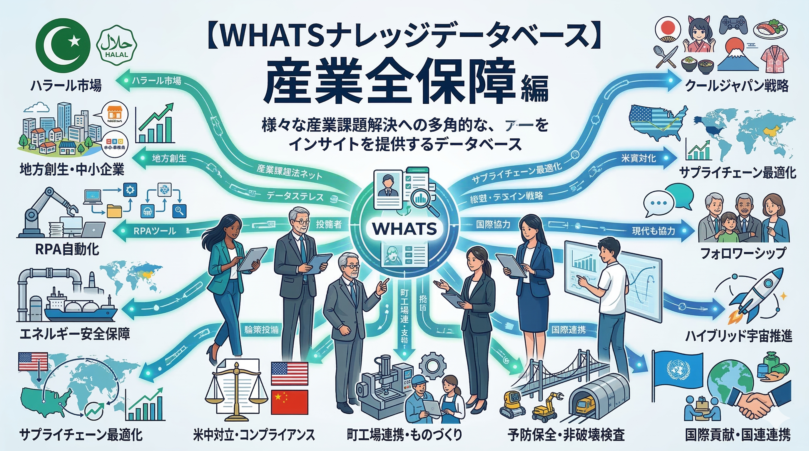 本サービスは、矢野経済研究所が提供する「WHATSセミナー」の中から、 「産業全般」カテゴリに絞って利用できる法人向けサービスです。 ハラール、中小企業の先進事例、RPA、エネルギー安全保障、フォロワーシップ、宇宙関連技術、非破壊検査、町工場連携、輸出コンプライアンス、米中対立、米国サプライチェーン政策、クールジャパン戦略など、幅広い収録コンテンツを通じて、経営環境の変化、政策動向、技術革新、国際情勢、事業機会を体系的に学ぶことができます。 さらに、Deliveru AIアシスタントにより、講師が解説した内容を根拠に、知りたい情報を効率よく検索・整理・確認できます。 経営企画、事業企画、新規事業開発、営業提案、管理部門教育など、幅広い業務に活用いただけます。
