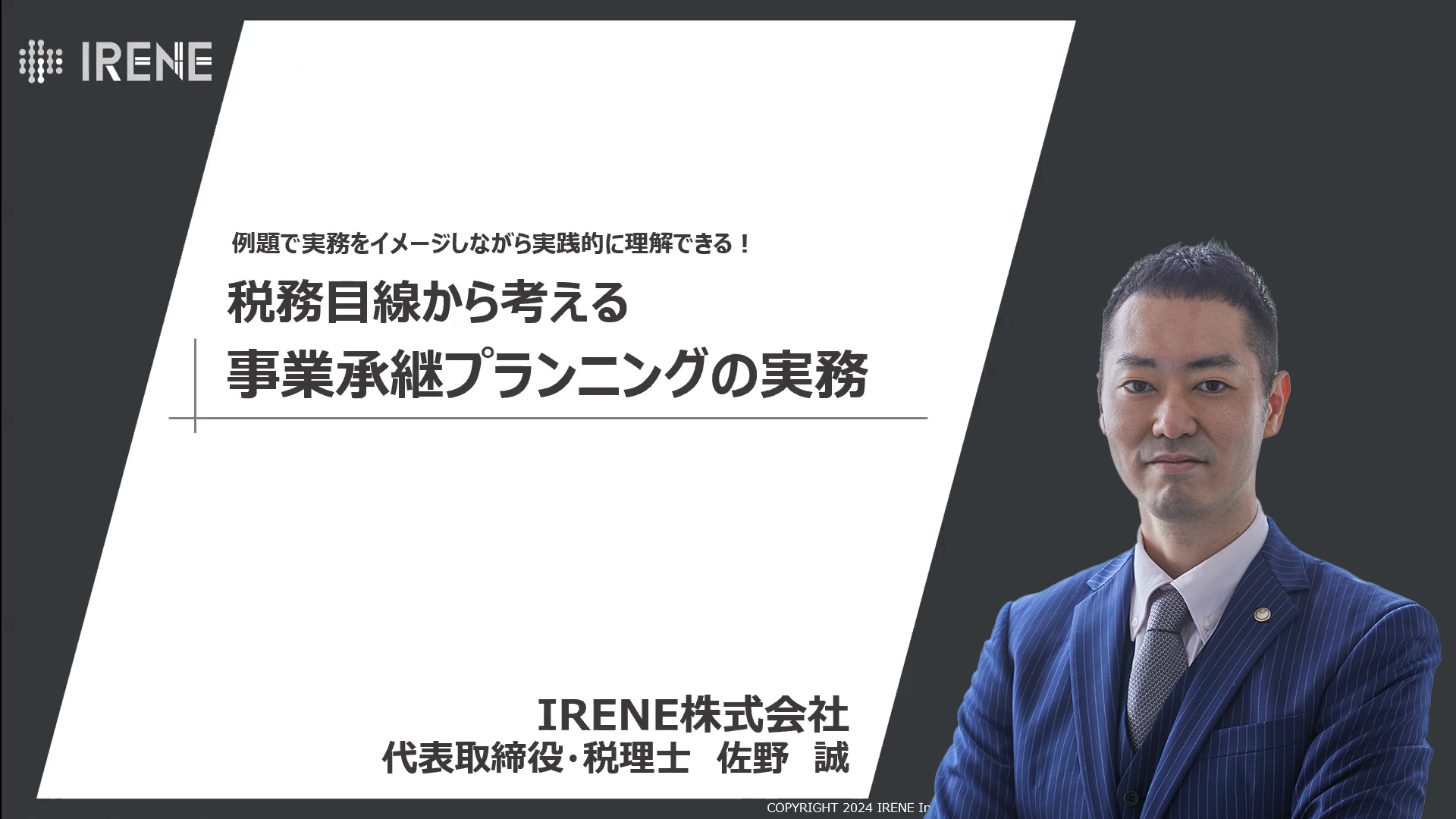 中小企業の経営者にとって、事業承継は今後の重要な課題です。本セミナーでは、税務の観点から事業承継プランを検討するための実務知識と具体的な手法を体系的に学びます。