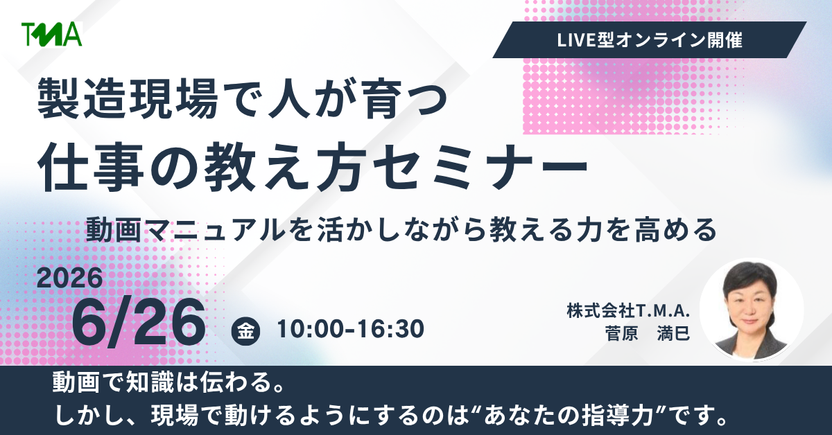製造現場で人が育つ 仕事の教え方セミナー ~動画マニュアルを活かしながら、教える力を高める~