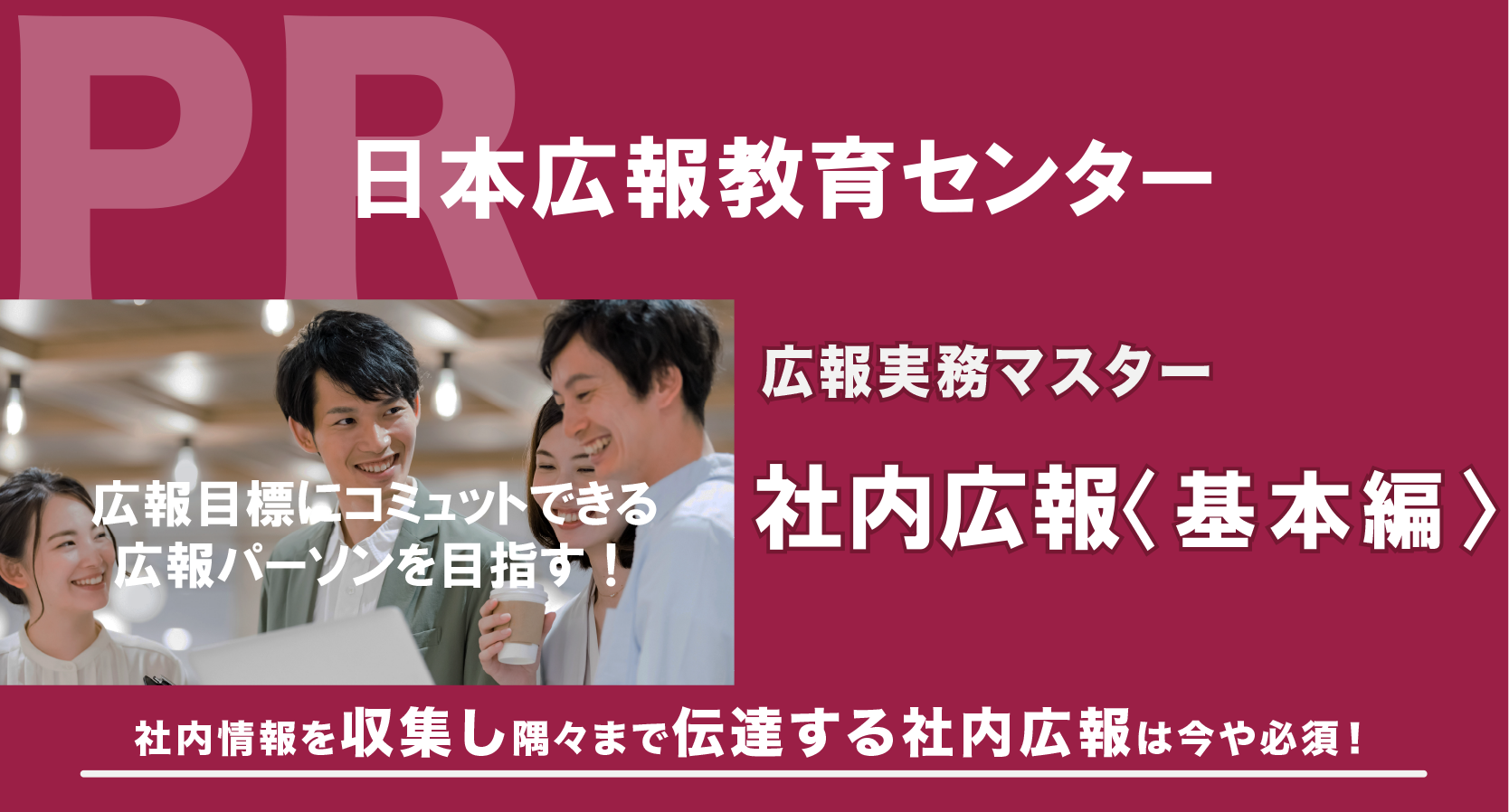 広報実務マスター「社内広報<基本実務編>」とは、現代の企業経営に必須とされる社内広報の基本を押さえるとともに最新の手法とその具体的な展開方法をわかりやすく解説する講座です。従来の社内報などのツールに加え新しいツールを知り、社員との多岐にわたるコミュニケーション手法を学ぶことで、すぐに実践できるようになります。社内広報は企業が社員に対して社内の情報を共有するために実施する広報活動です。社内のコミュニケーションを円滑にするための必要不可欠な手法です。この社内広報を機能させることで、より社員としての意識を自覚し、その会社の一員としての行動を促します。企業と社員の信頼関係を深め、最終的には企業の組織を強化につながります。