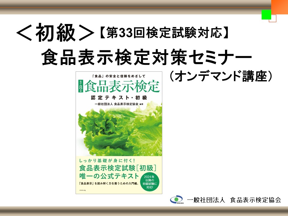 第33回食品表示検定 初級対策セミナー(オンデマンド講座)