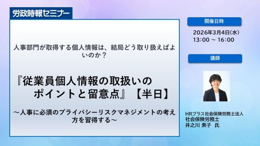 『従業員個人情報の取扱いのポイントと留意点』【半日】WEB