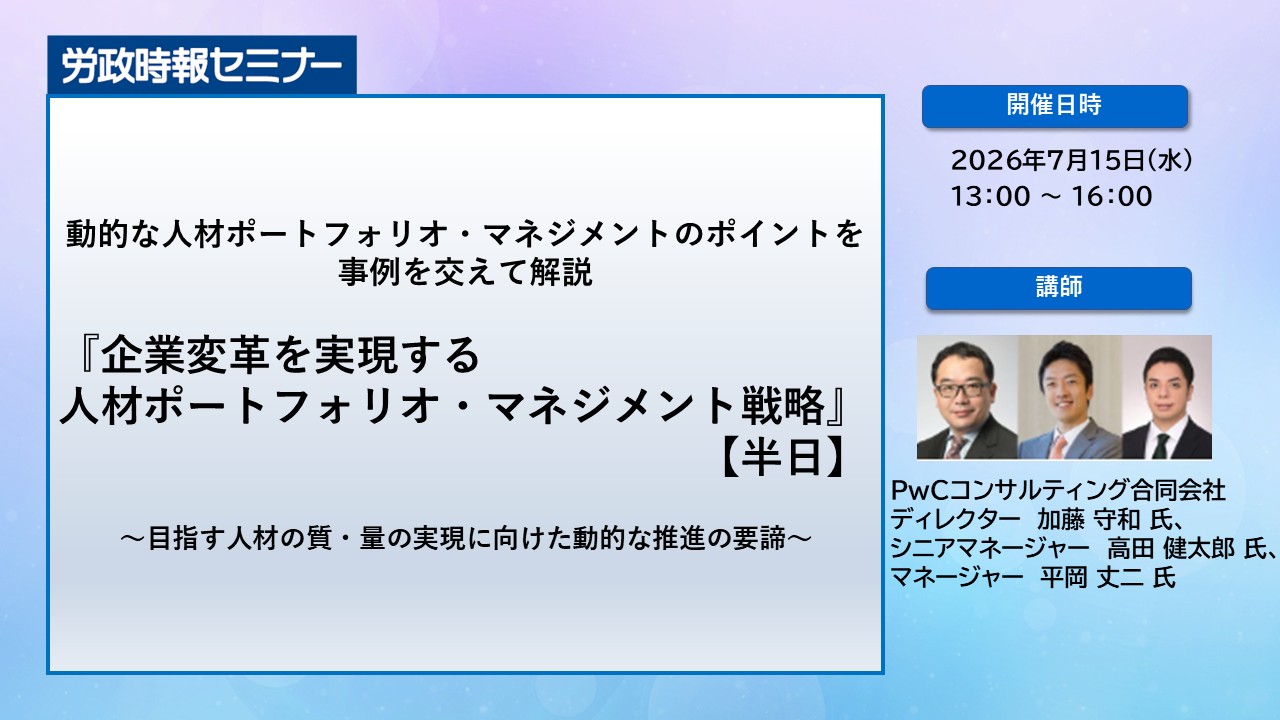 ※本講座ご参加の皆様には講師執筆書籍『企業変革を実現する 人材ポートフォリオ・マネジメント戦略』(労務行政)を進呈します。