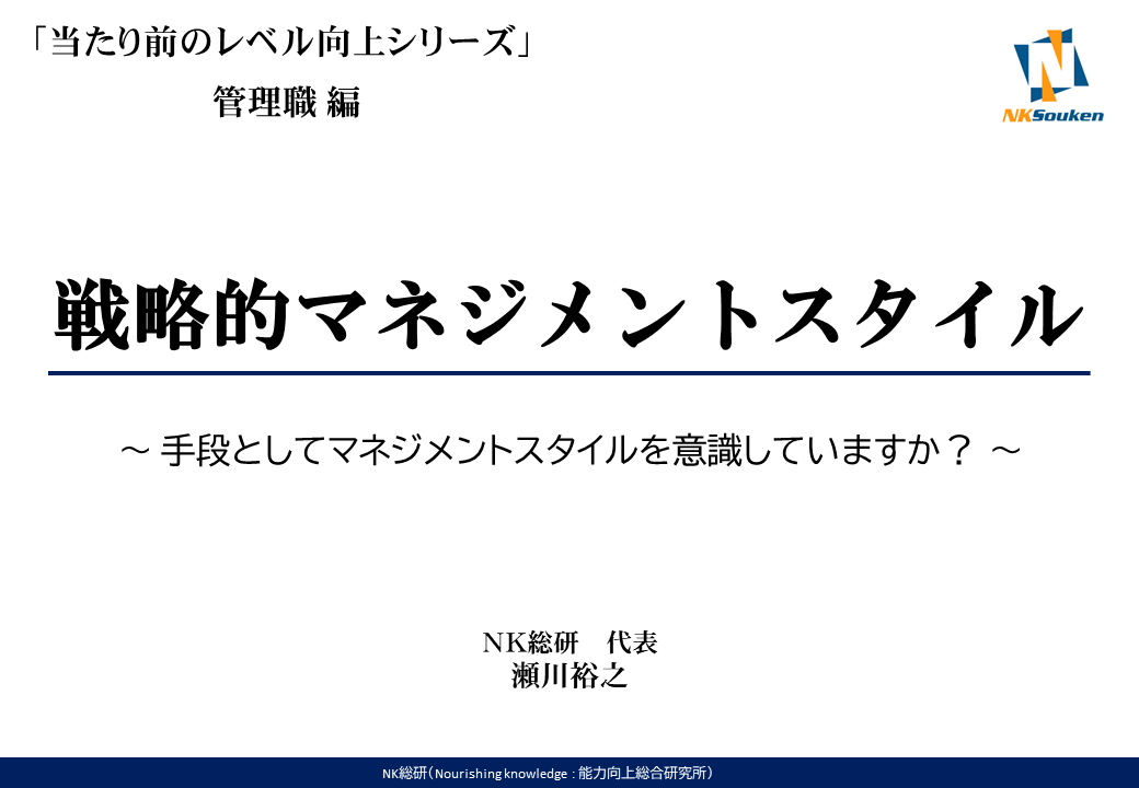 『戦略的マネジメントスタイル』~ 手段としてマネジメントスタイルを意識していますか? ~