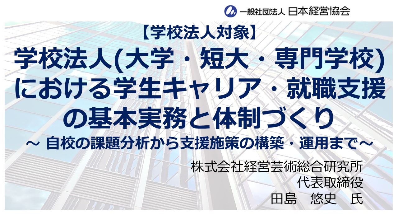 学生・企業・学校法人、そして国を取り巻く環境は過去とは大きく変化し、学生キャリア・就職支援の取り組みも学校ごとに多様化しています。自校の特徴を踏まえたきめ細かな支援に加え、少子高齢化を見据えた多様な施策の提案が、いま学校法人には求められています。