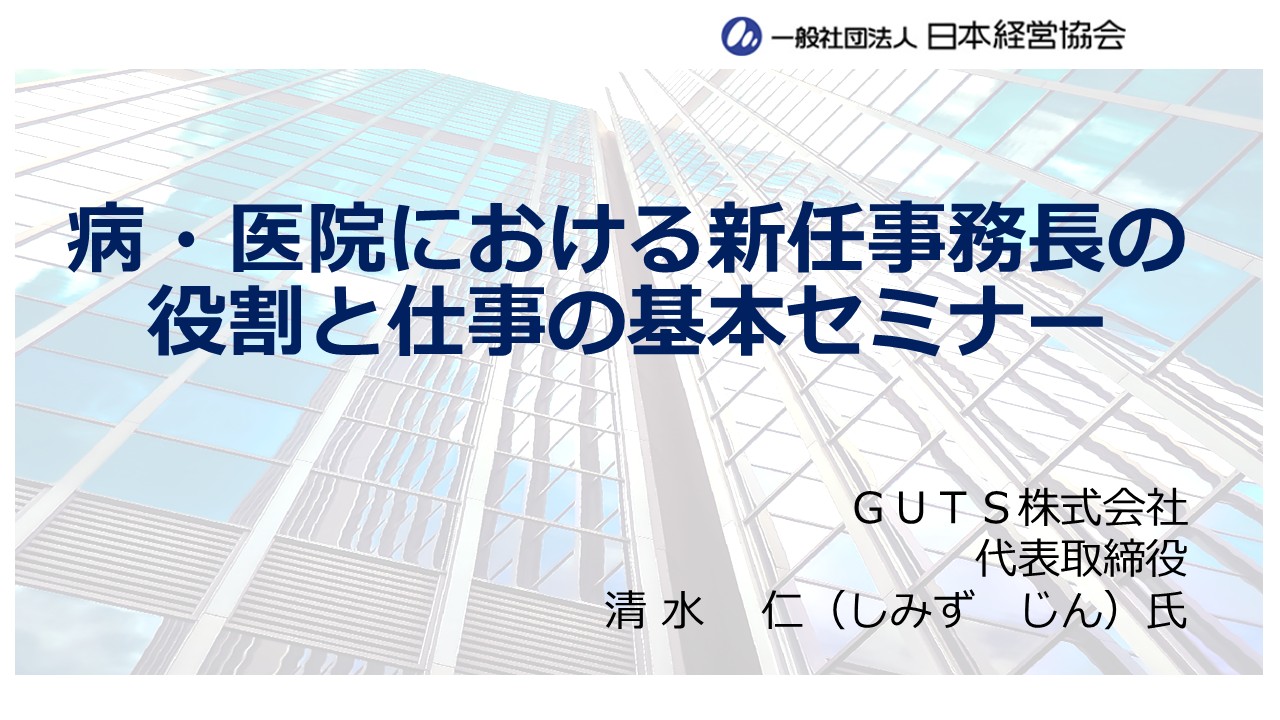 本セミナーでは、特に新任の事務長の方に、病院組織管理の「要(かなめ)」としての役割と仕事の基本を習得いただきたく開講いたします。