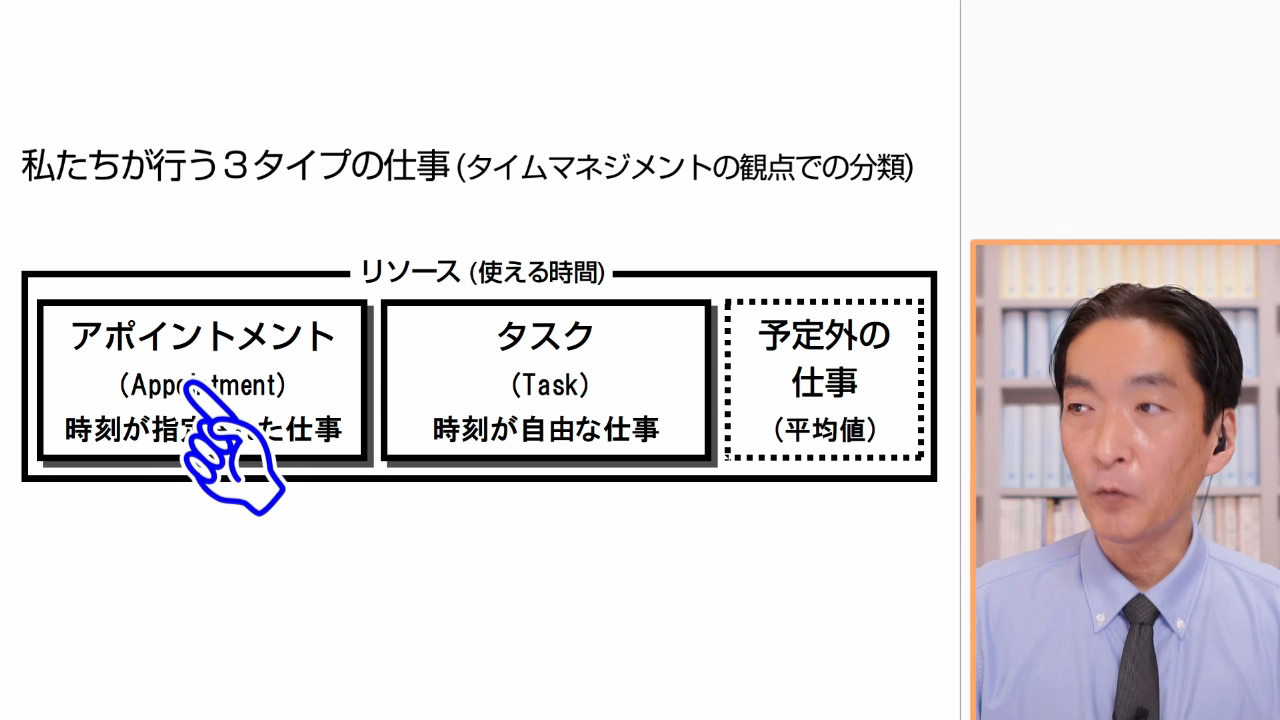 タイムマネジメントとは何か簡単に言うなら、アポイントメント管理(スケジュール管理)とタスク管理の両方を行うことだと定義することができます。これに、突発的に発生する「予定外の仕事」を加えた3種類の仕事にどう対応すべきか? それを具体的な判断基準とともにお伝えするのが本セミナーの特徴です。