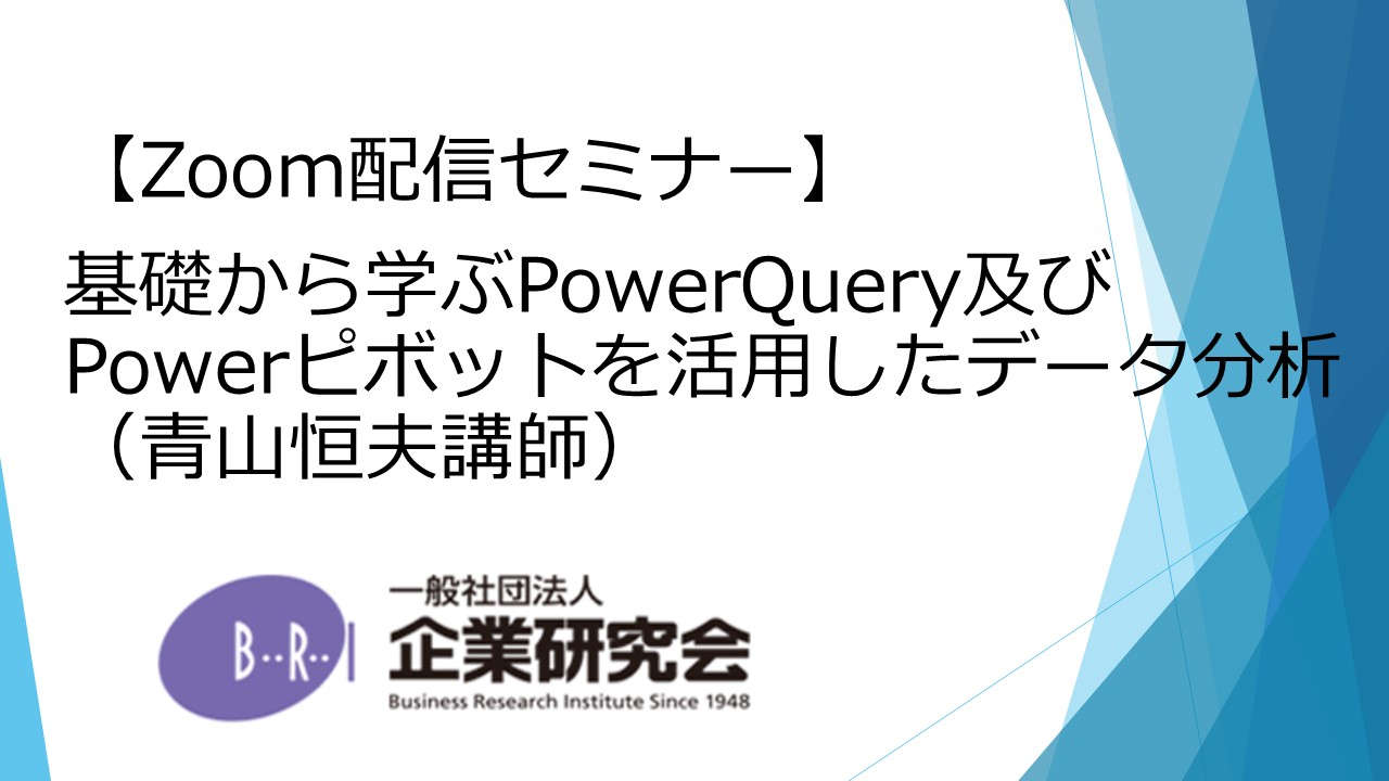 【開催にあたって】 今回はモダンExcelと称されるPowerQueryおよびPowerピボットの解説と演習セミナーを行います。 PowerQueryでファイルの加工や修正を行い、Powerピボットで読込み、ピボット展開して、複数ファイルの任意のデータ項目を組み合わせてデータ分析可視化を行うことができます。 しかも新たなツールの導入なしに、皆様がお持ちのExcelで行うことができるという大きなメリットがあります。そのようなPowerQueryおよびPowerピボットを解説と演習を取り混ぜながら習得して頂きます。 なお、PowerQueryについてその特徴がわかる動画を作成し、Youtubeに限定公開しておきましたので、ぜひご覧ください。 https://youtu.be/9TSn0DfAIAU