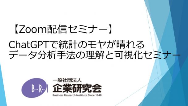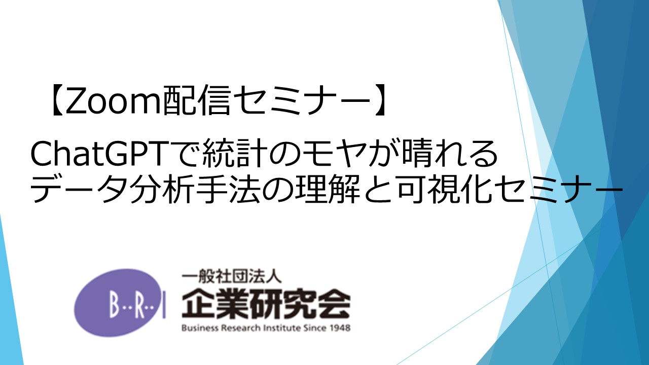 【開催にあたって】 本セミナーの趣旨はChatGPTを使ってさまざまな統計手法でどんな分析ができるのかといったことを理解して頂くということです。私は統計について以前から非常に興味がありました。ただ統計学を勉強しようとして何冊か書籍を読み始めるのですが、やたら難しくてしかも一体何が結果として得られるだろうかが全くわかりませんでした。そうしているうちに、統計学というより統計手法を使って何ができるかといった、統計手法とその分析から得られる洞察を整理してみたいと考えるようになりました。そうなると俄然、再度統計に対して興味・関心が湧くようになってきました。 最近ChatGPTがブームとなっていますが、ChatGPTを使っているうちに統計手法による分析ができることも分かってきました。とはいっても、ChatGPTによる統計分析結果というのはやはり信頼性に欠けるところはあります。ただ、信頼性に欠けるのですがどんな統計手法でどんな結果が得られるのか、つまり私たちの業務においてChatGPTによる統計分析にどんな役割が期待できるのかがわかってきます。また、必要に応じて統計ツールによる分析も行い、ChatGPTとの分析結果との差異も可視化してと、ChatGPTの結果の利用についても留意点が理解できます。 以上をまとめますと、本セミナーの趣旨はChatGPTを使った統計手法によるデータ分析可視化で、それぞれの統計手法がどのようなもので何が可視化分析できるのか、そして、それは参加者にとって役立つものかそうではないのか判断できるための解説を行うことです。