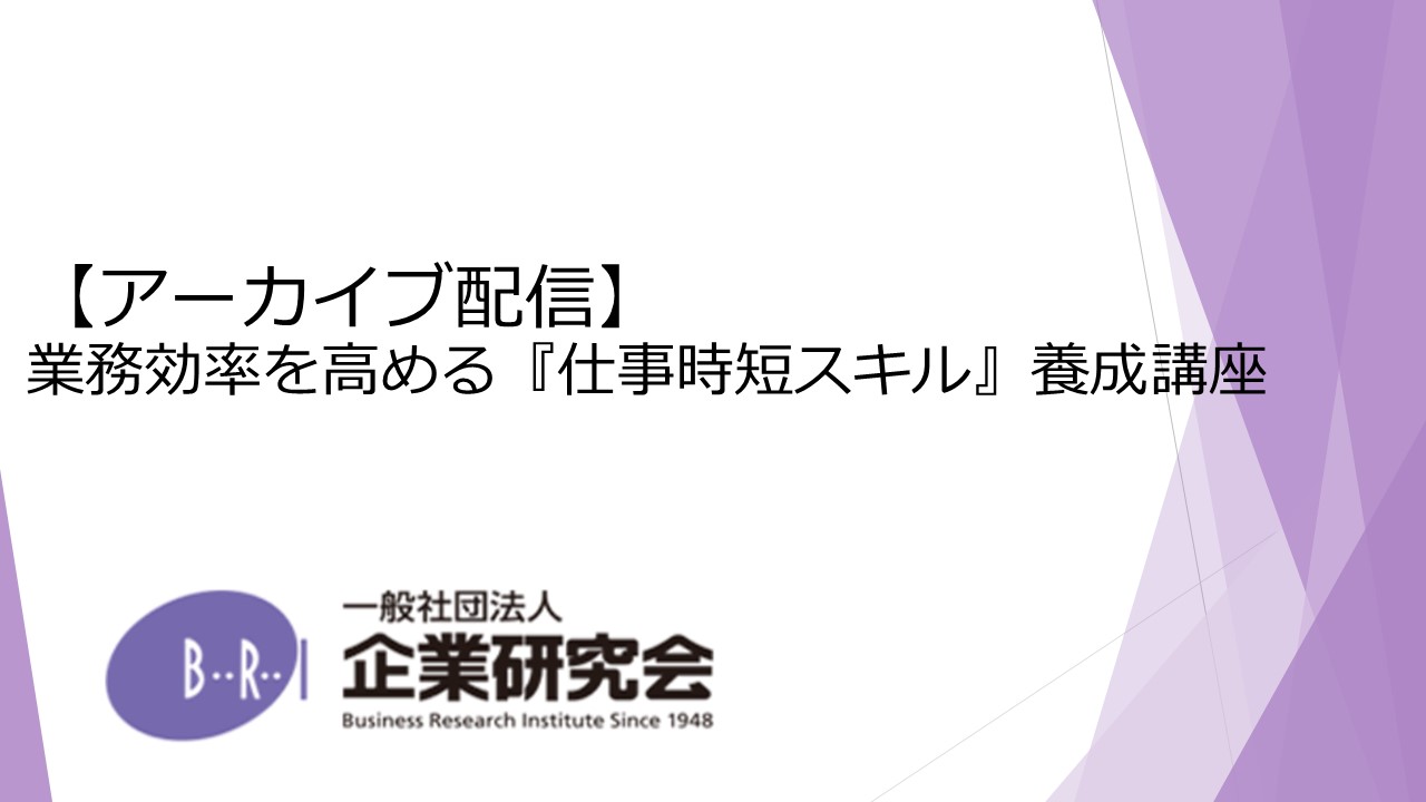 各企業とも労働時間の削減が大きなテーマになっています。しかし、労働時間を画一的に短くするというかつての“時短”ではなく、重要なのは、業務プロセスの効率化と社員のモチベーションを両立させ、単位時間の生産効率を高めていくことです。本セミナーでは、「仕事のスピードアップによる生産効率の向上」に主眼を置き、具体的・実践的な手法を講師の体験を交えながら解説します。