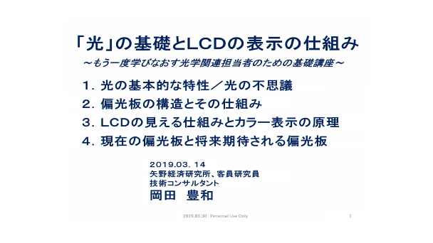 昨今、多くの光学フィルム関連企業において、担当者への「光」「フィルム」の学術面・技術面での基礎的な教育がおろそかになっているように見受けられることがある。
