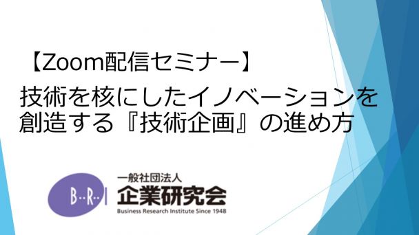 【開催にあたって】 『技術企画』は、これまで培われた自社の技術を踏まえつつ、未来へむけたイノベーションを生み出すと同時に、企業の未来を担う技術者、研究者を育成する組織活動です。 しかし、多くの企業では、自社技術の整理や可視化に終始している、個別の事業や製品のための単発の要素テーマ企画にとどまっている、属人化していて組織的な取り組みになっていないなど、技術企画が十分機能していない状況に悩みを抱えています。 本セミナーでは、技術者、研究者が自分事として取り組み、企業の未来を担う技術と人材を生み出すための技術企画の進め方について、(株)ケミストリーキューブが開発した実践手法をもとに事例を交えて解説します。