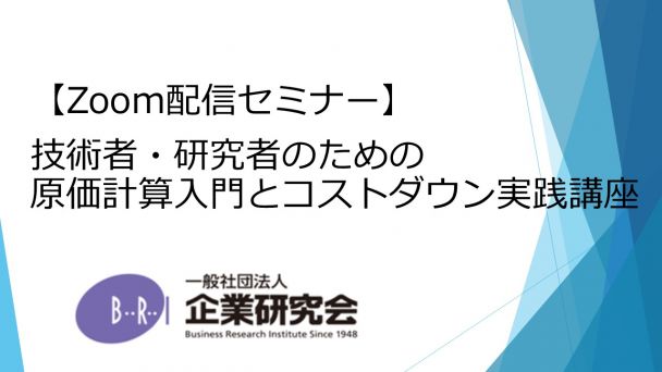 【開催にあたって】 企業が利益を上げるための最も有効な方法は、図面段階で80%が決まる製品原価のコストダウンを実現することです。それは、技術者・研究者にに委ねられています。製品原価のコストダウンには「事前の原価計算によるコスト構造の見える化」と原価計算結果をコストダウンへ活用する「コストマネジメント」が欠かせません。製品原価を自由自在に把握できる研究者・技術者は、自信を持って日常の業務に取り組み、会社の業績に貢献しています。 本講座は、技術者・研究者の方々に図面段階での製品原価計算の仕組み、製品別の原価を活用したコストダウンや利益を得るためのノウハウを豊富な事例と演習を交えて徹底指導します。図面段階での原価計算とコストマネジメントをマスターして、コスト意識が高いワンランク上の技術者・研究者を目指してください。 ※電卓をご用意ください。